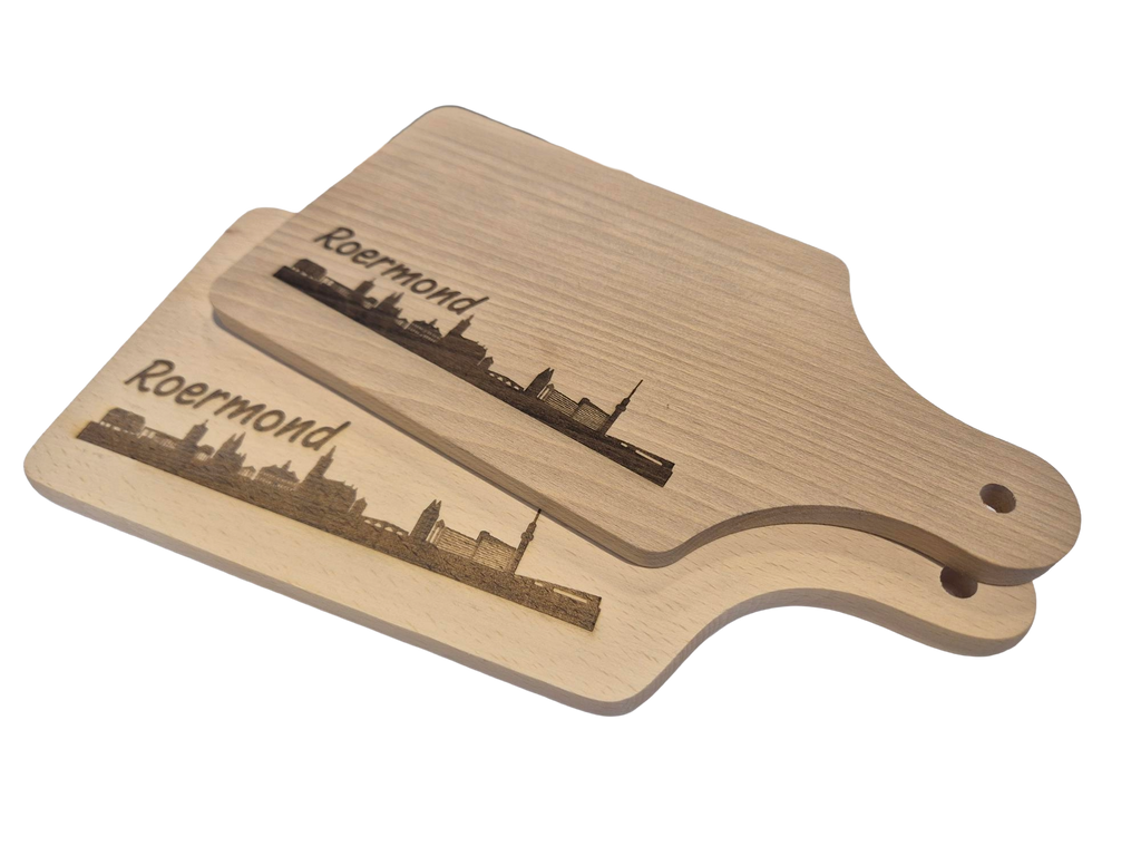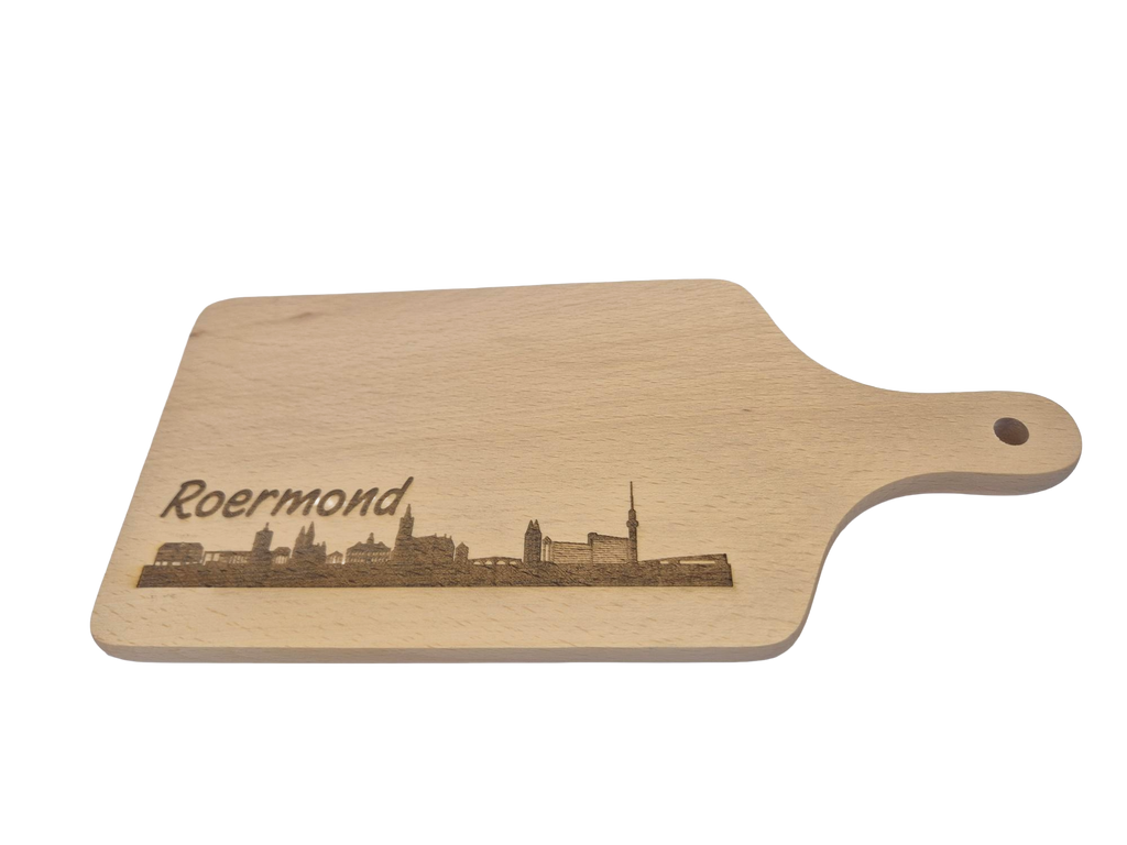 Borrelplank gegraveerd met skyline van Roermond.